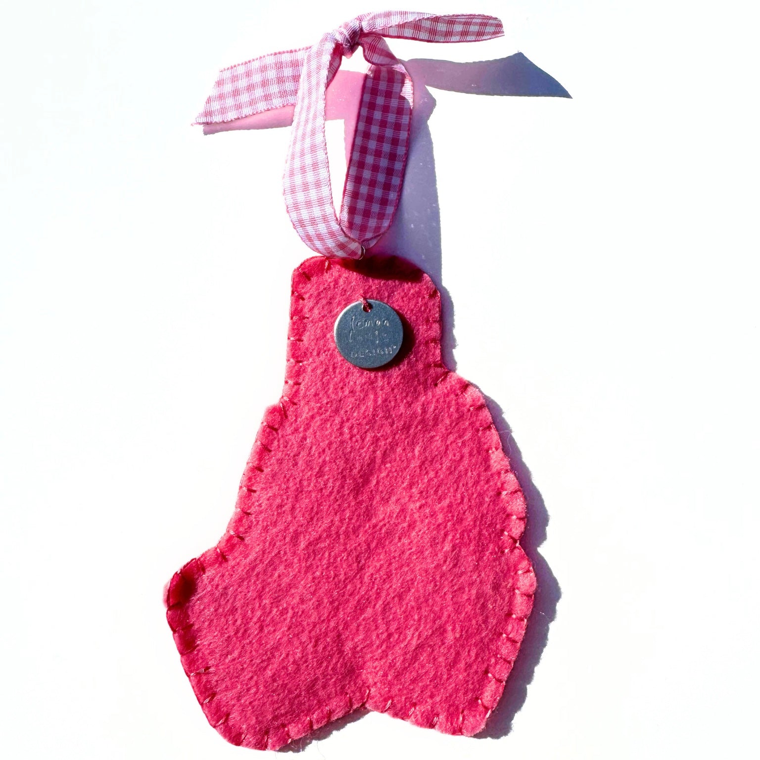 - Hand stamped metal charm featuring the "Lemon House Design" logo sewn on the back.